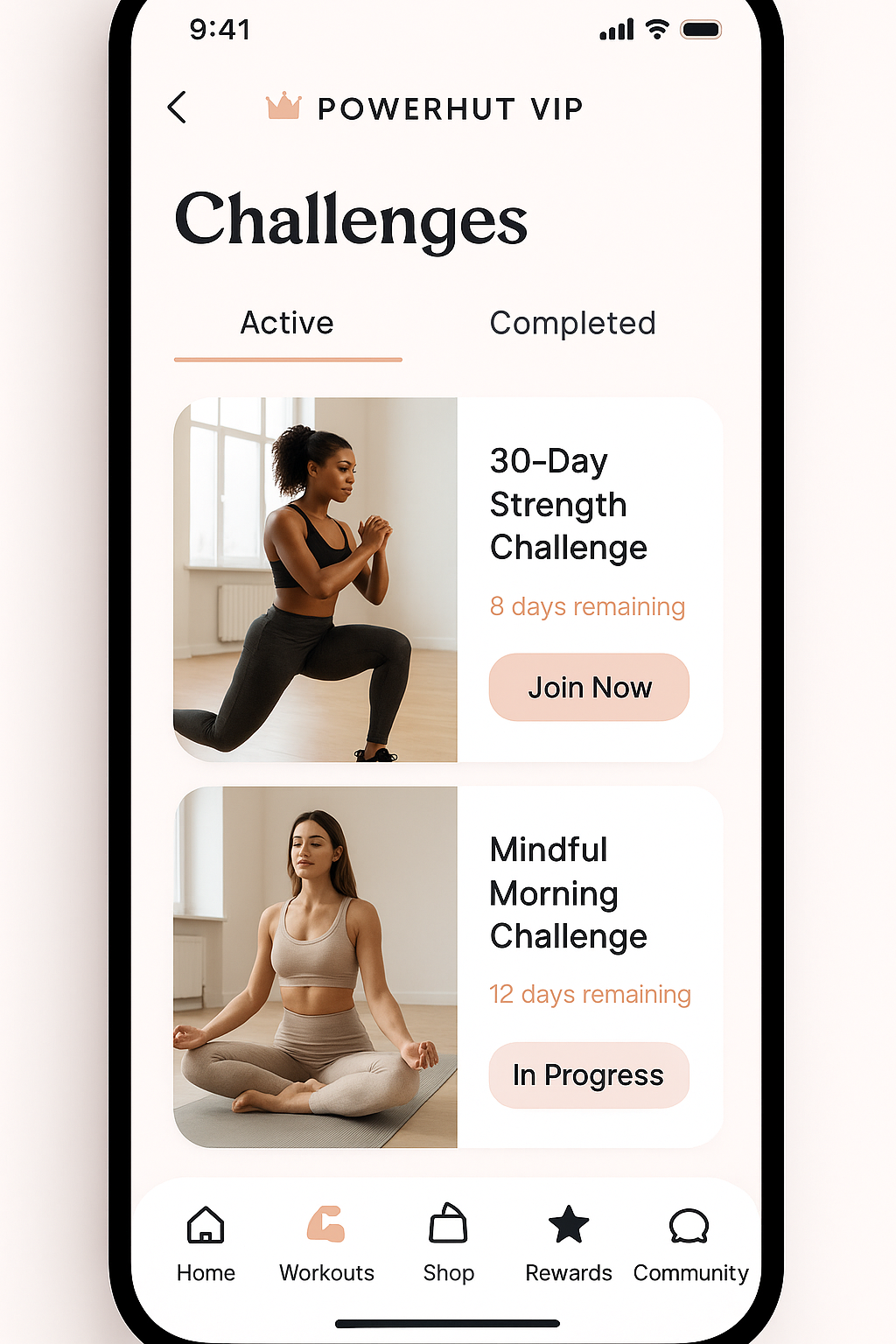 The Powerhut VIP App will feature an exciting Challenges section, where every goal you crush brings you closer to exclusive rewards. From workout streaks and hydration goals to mindset challenges and nutrition habits, these mini-missions are designed to keep you motivated and consistent. Each challenge is built to fit into your lifestyle, so you can feel proud of your progress while stacking up wins along the way.